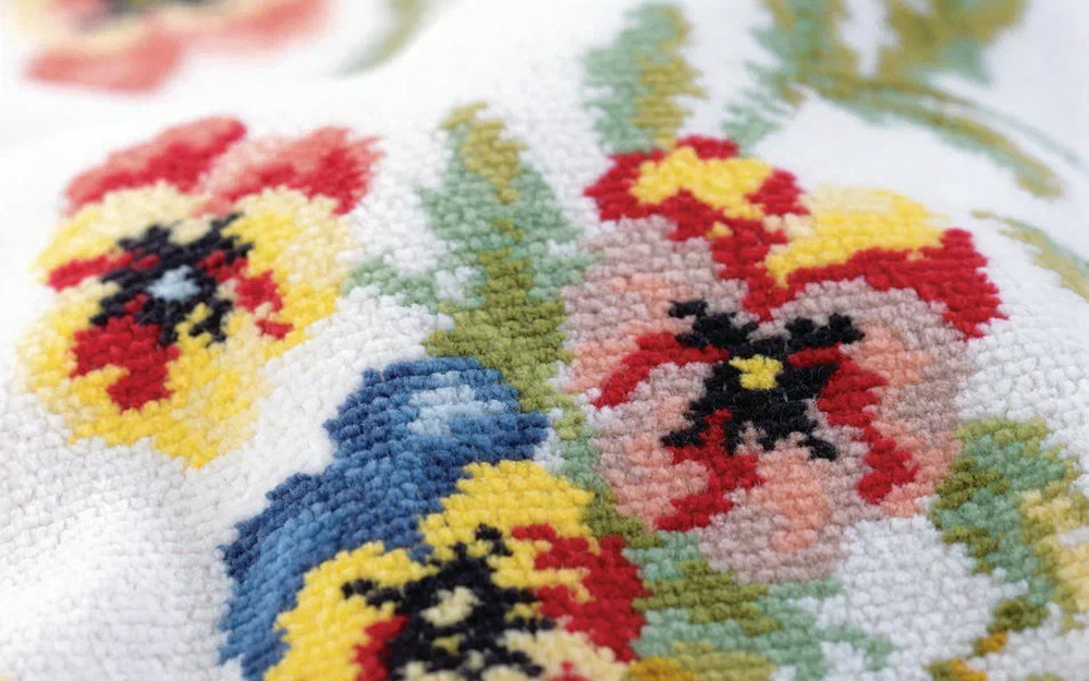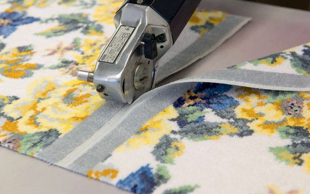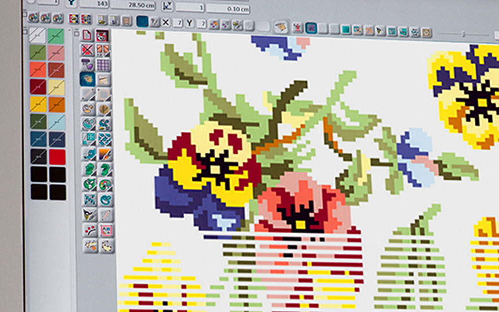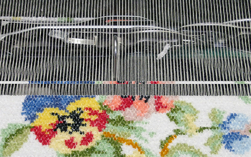 Это достигается благодаря уникальному оборудованию и заранее запрограммированной последовательности цветов в переплетении нитей.