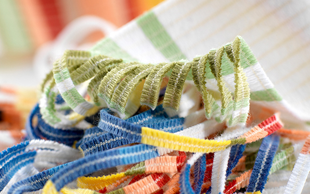 Это очень сложная технология, благодаря которой из длинных продольных лент, скрученных особым образом в длинные пушистые спирали — «гусеницы», получается бархатистая пряжа шенилла. Затем из этой скрученной пряжи ткут готовое полотно.