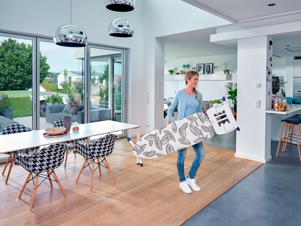 С Leifheit вы сразу заметите разницу: мощная система фиксации ножек обеспечивает абсолютную устойчивость на любой поверхности, будь то ковёр или гладкий пол, давая вам уверенность в каждом движении утюга. Ультралёгкие, но невероятно прочные материалы делают доску удобной для переноски и хранения, что особенно важно, если вы убираете её после каждого использования. С гладильными досками Leifheit экономя драгоценное пространство обеспечена! А продуманная высота и длина поверхности позволяют с комфортом гладить даже длинные платья или постельное бельё, не прилагая лишних усилий.