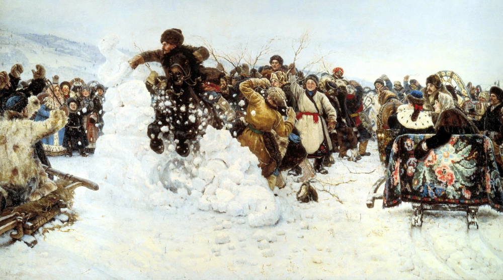 «Стояла белая зима с жестокою тишиной безоблачных морозов, плотным, скрипучим снегом, розовым инеем на деревьях, бледно-изумрудным небом, шапками дыма над трубами, клубами пара из мгновенно раскрытых дверей, свежими, словно укушенными лицами людей и хлопотливым бегом продрогших лошадок. Январский день уже приближался к концу; вечерний холод еще сильнее стискивал недвижимый воздух, и быстро гасла кровавая заря».