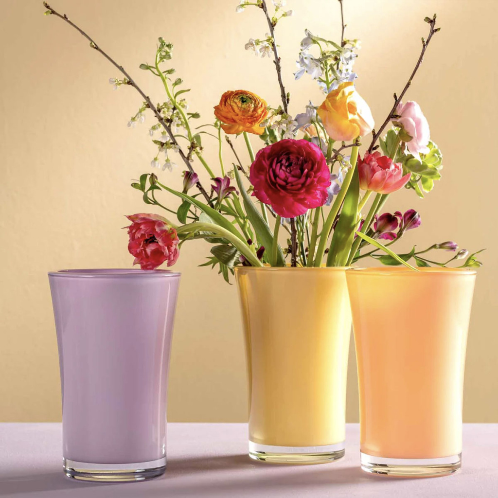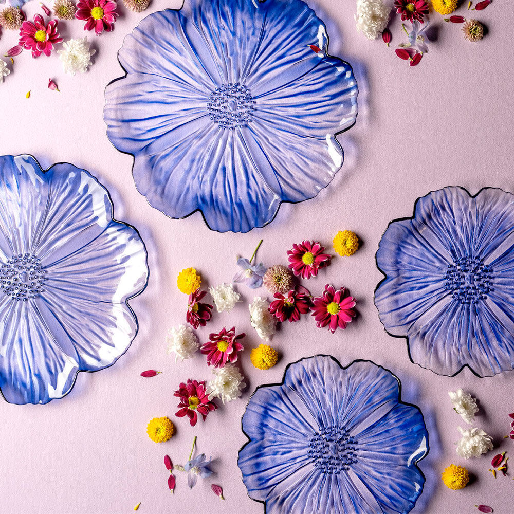 Закусочные тарелки, салатники и вазы из прозрачного цветного выдувного стекла с фактурными изображениями цветов и бабочек из коллекции Luminosa могут стать изящным акцентом сервировки. Бренд Leonardo