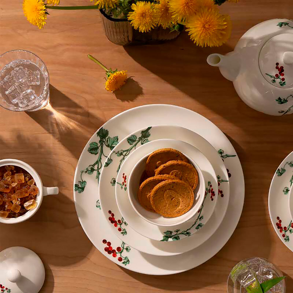 Белизну фарфора подчеркивает изящный растительный орнамент с акцентами красных ягод. Коллекция посуды Berry, бренд Zapel