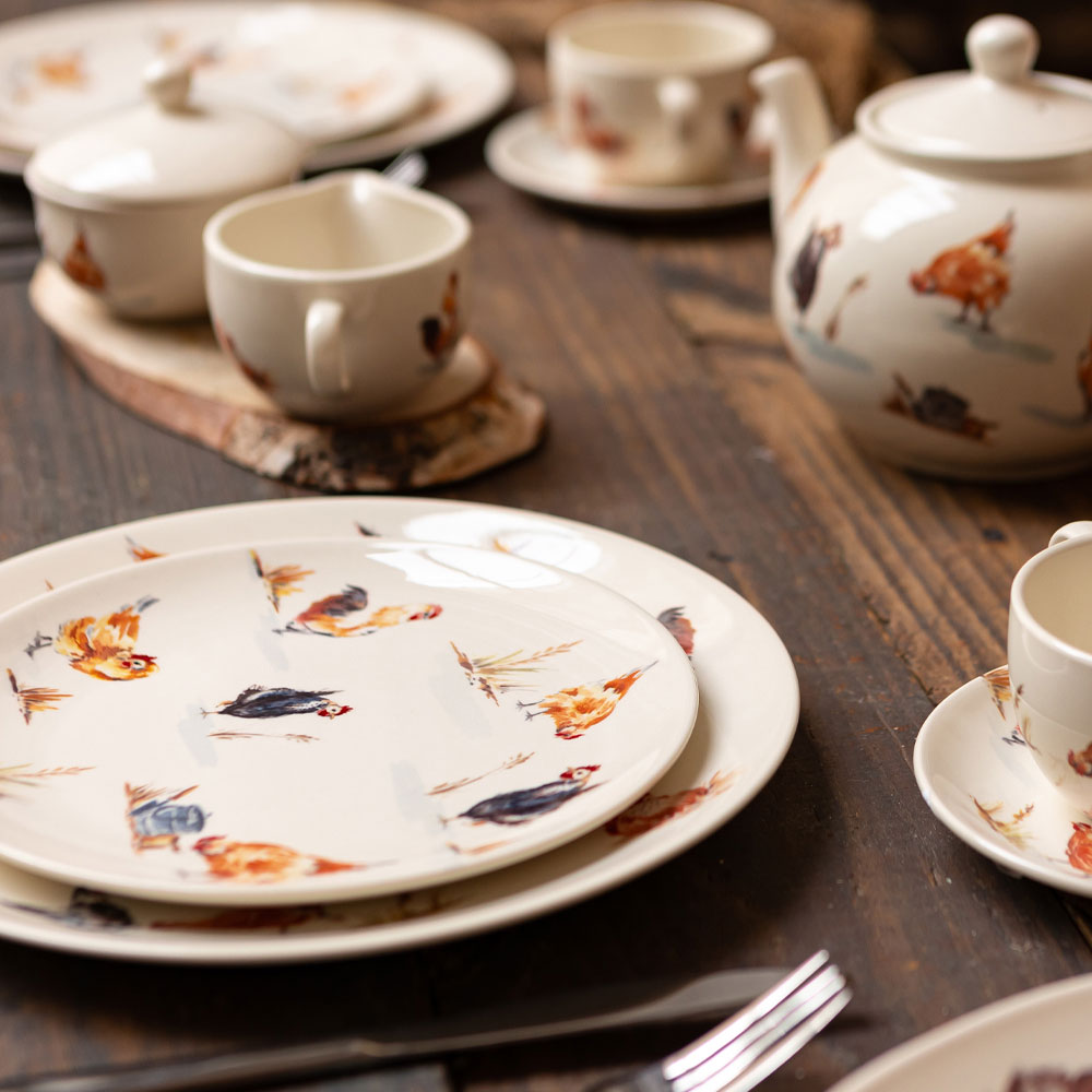 Коллекция фаянсовой посуды Country Farmyard с рисунками домашних птиц и плетеным орнаментом создает уютное очарование сельской усадьбы. Бренд Grace By Tudor England