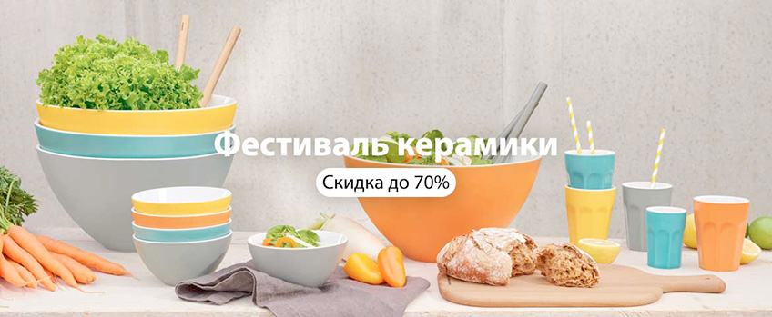 С 11 по 19 марта проходит акция «Фестиваль керамики». Скидки до 70% на посуду и декор из керамики. Акция проходит в розничной сети «Евродом» и интернет магазине.