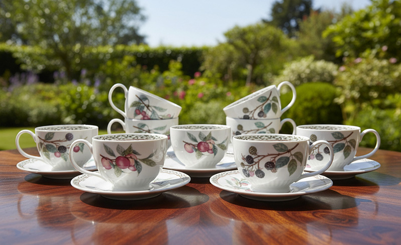 Дизайн каждой тарелки, чашки или блюдо этой коллекции — это пышный фруктовый сад в миниатюре, в котором радуют взор пышные грозди ежевики и румяные сочные персики. Блестящая, как утренняя роса, глазурь подчеркивает богатство красок, делая изображение фруктов и ягод объемным и буквально живым. Элегантная посуда из тонкостенного фарфора кажется невесомой, но при этом является абсолютно прочной.