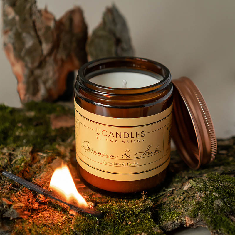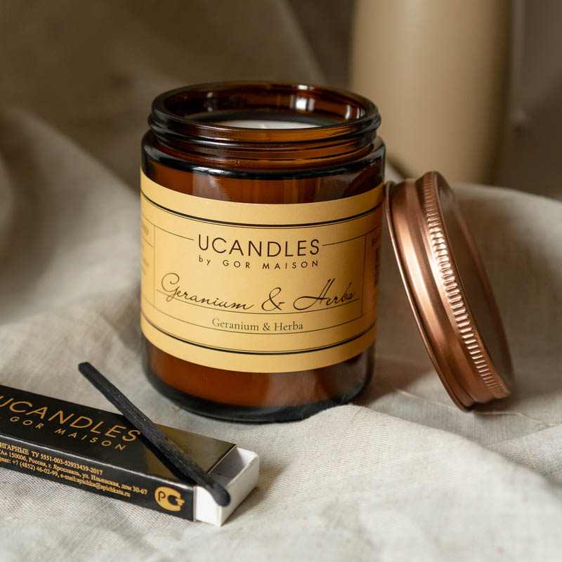 Свеча ароматическая Ucandles by Gor Maison Geranium & Herbs Botanique