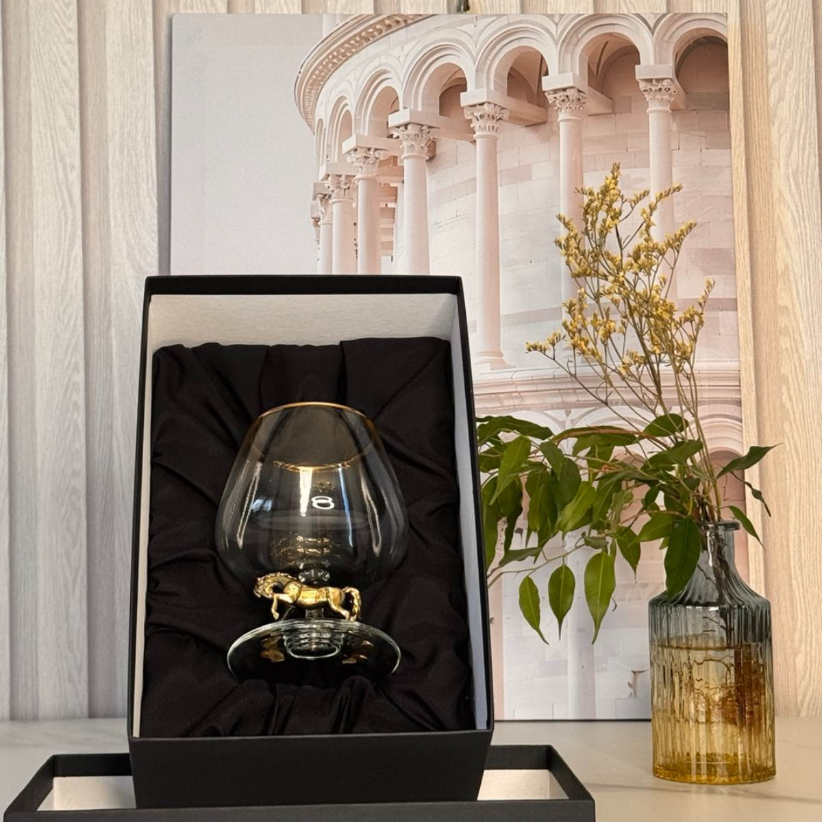 Бокал для коньяка Город Подарков со статуэткой Лошадь в черной коробке
