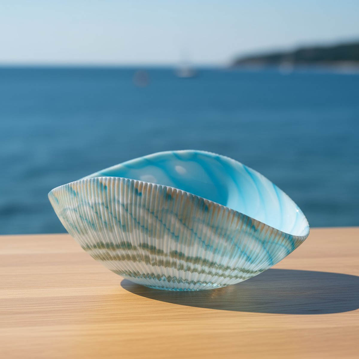 Блюдо декоративное малое Yalos Shell, слоновая кость с бирюзовым