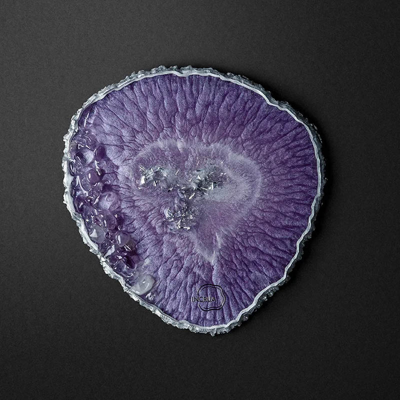Плато из эпоксидной смолы с натуральными камнями Incrua Plato (XL) Инжир, серебро