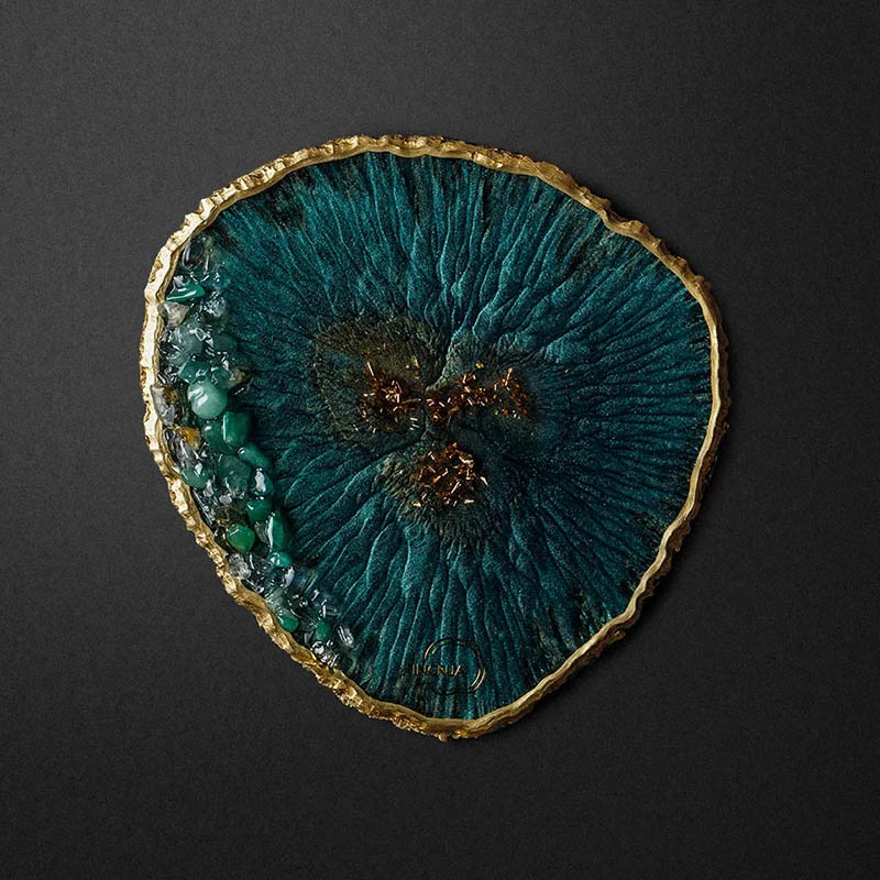 Плато из эпоксидной смолы с натуральными камнями Incrua Plato (XL) Пикок, золото