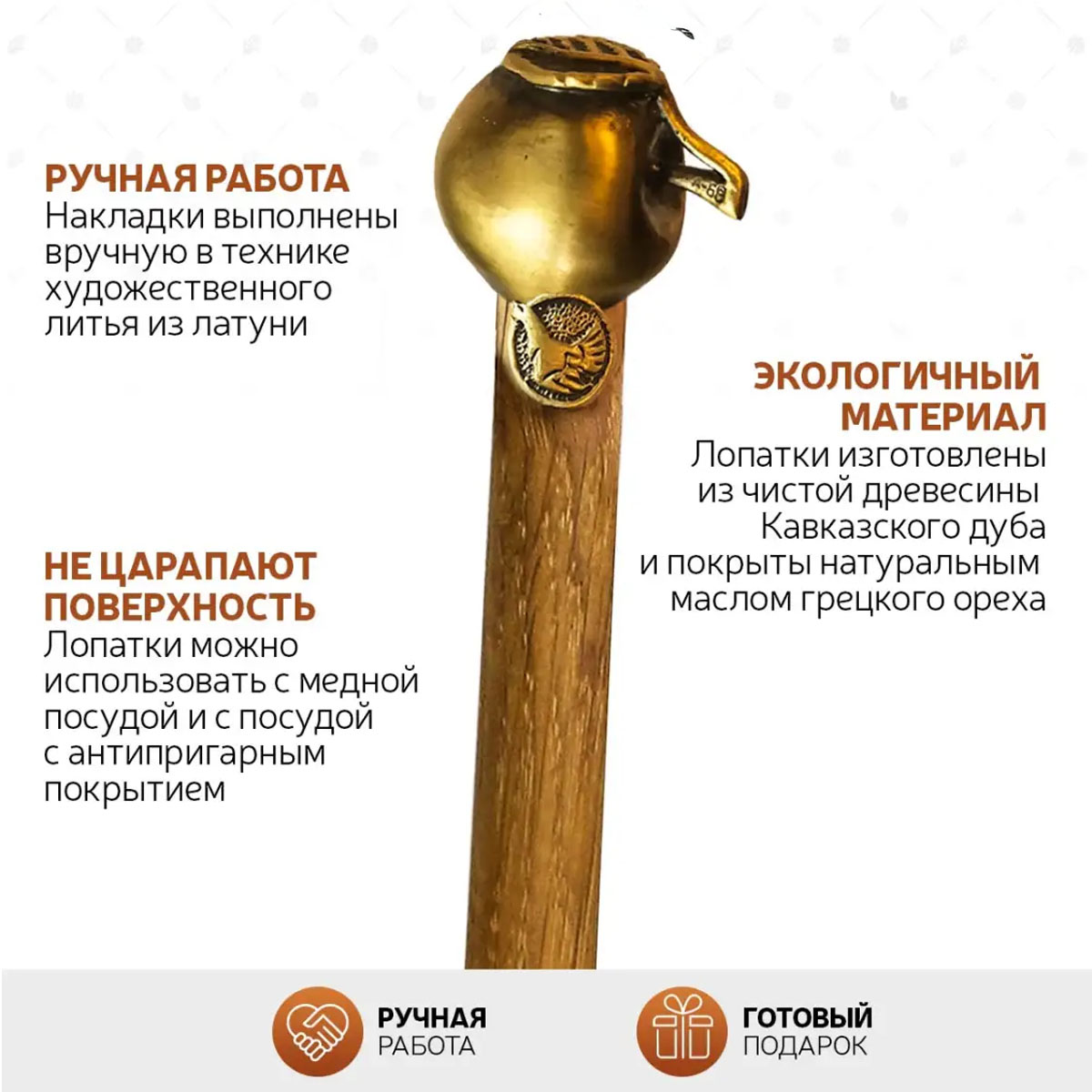 Лопатка Кольчугинский Мельхиор Яблоко, деревянная с латунной накладкой широкая
