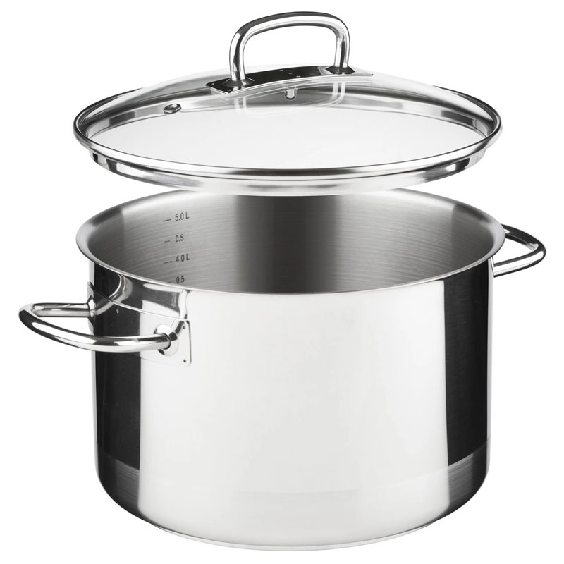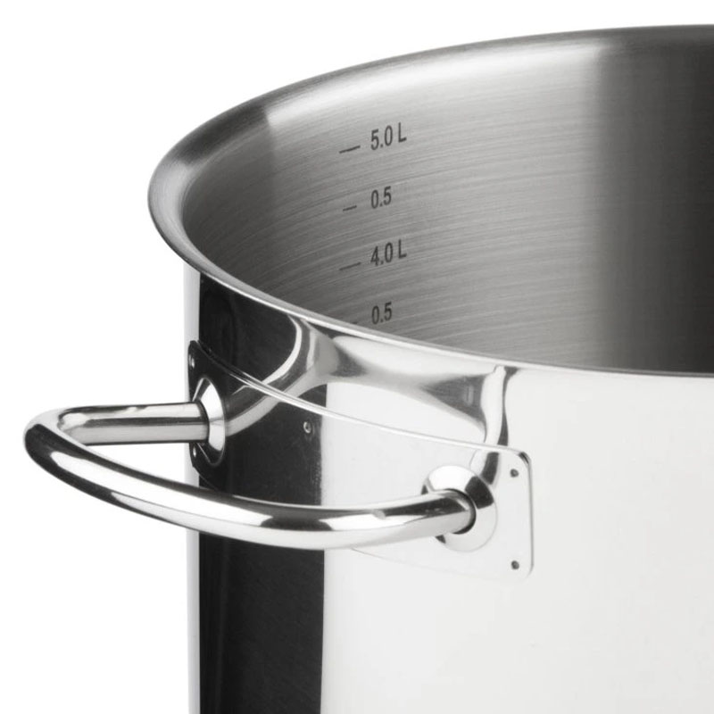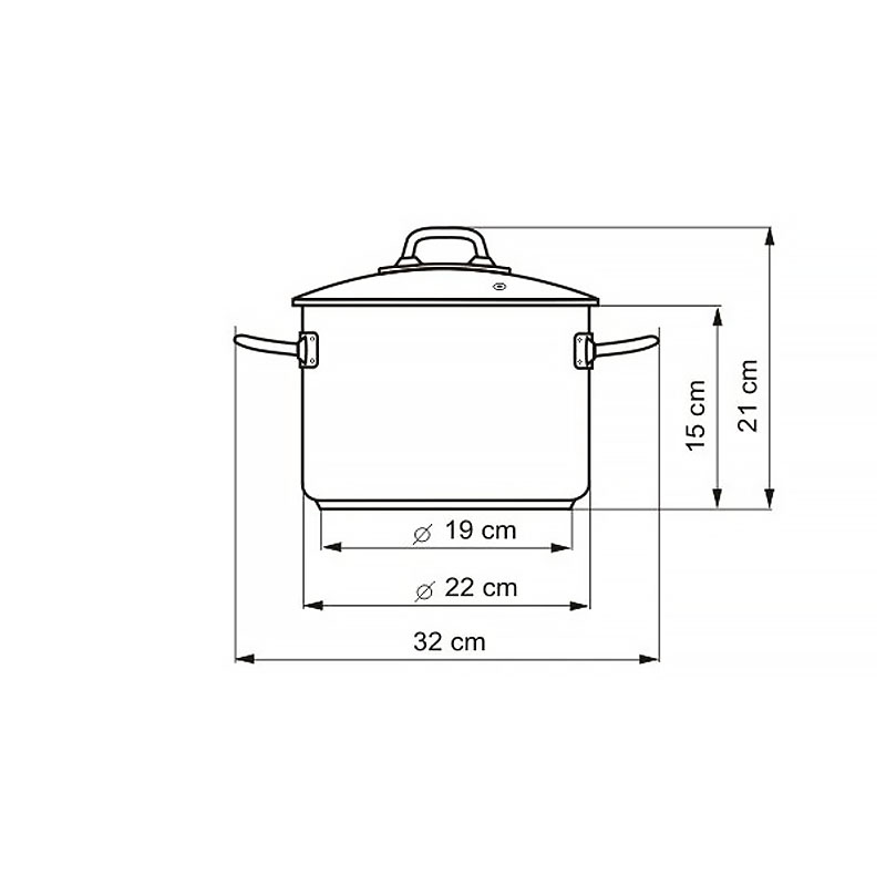 - 5-слойное капсульное дно (3 мм). Сердцевина из алюминия, запаянная между слоями стали, удерживает тепло ещё 10 минут после выключения плиты для томления без энергии.