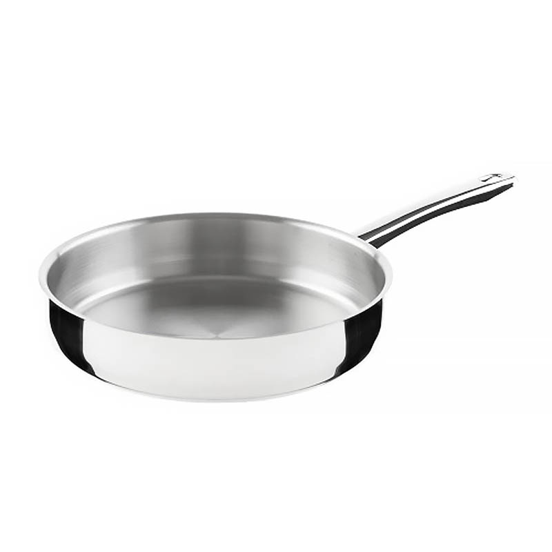 - 5-слойное капсульное дно (3 мм). Сердцевина из алюминия, запаянная между слоями стали, удерживает тепло ещё 10 минут после выключения плиты для томления без энергии.