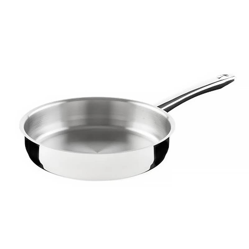 - 5-слойное капсульное дно (3 мм). Сердцевина из алюминия, запаянная между слоями стали, удерживает тепло ещё 10 минут после выключения плиты для томления без энергии.