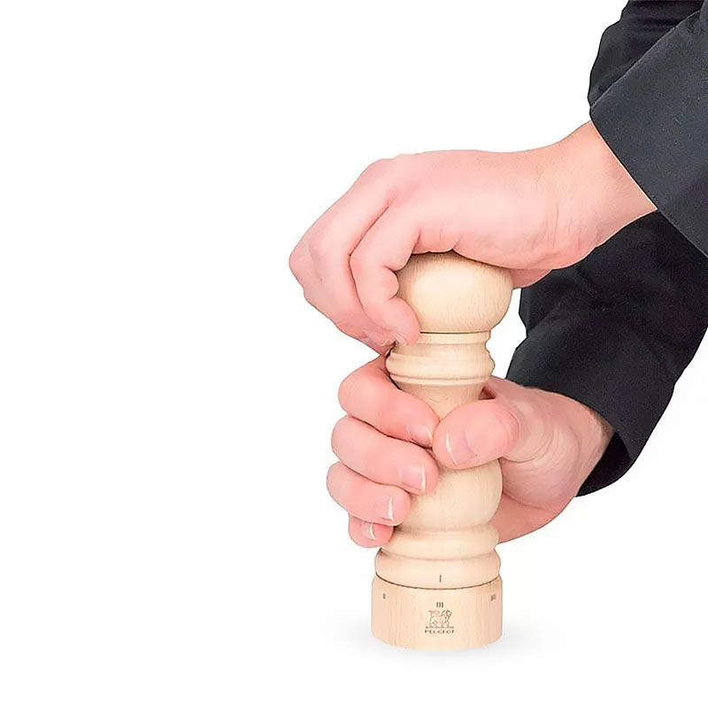 Например, мельница для перца Peugeot оснащается двумя рядами геликоидных зубцов, надежно захватывающих горошины в момент размалывания. Система регулирования обеспечивает простой выбор тонкости помола, в соответствии с необходимостью — от крупного дробления, до размалывания в пыль.