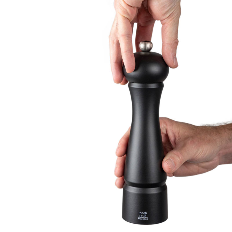 Например, мельница для перца Peugeot оснащается двумя рядами геликоидных зубцов, надежно захватывающих горошины в момент размалывания. Система регулирования обеспечивает простой выбор тонкости помола, в соответствии с необходимостью — от крупного дробления, до размалывания в пыль.