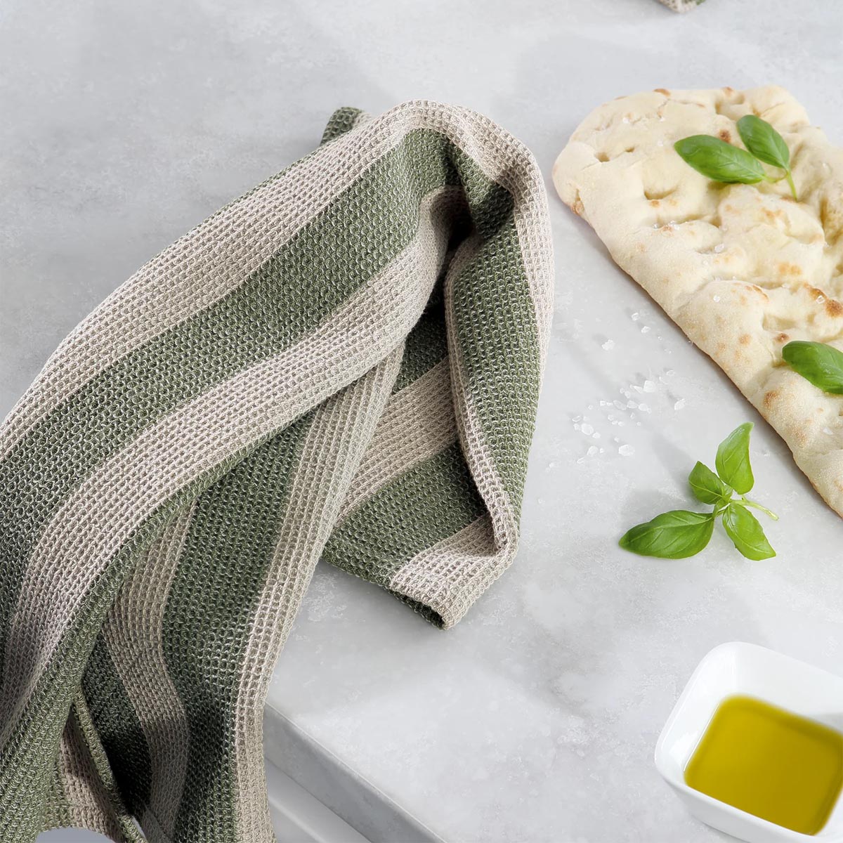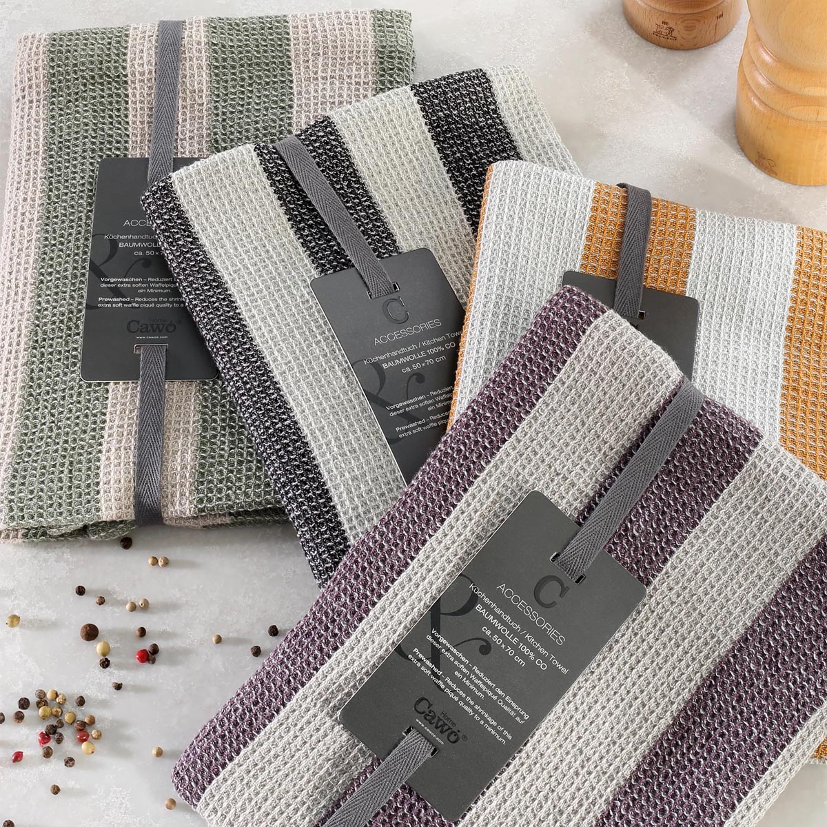Полотенце кухонное вафельное Cawo Stripes 50x70см, цвет коричневый, платиновый