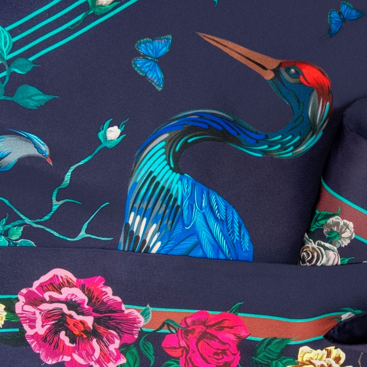 Шелковый платок Mollen Журавль в ежевично-черном, 90х90см