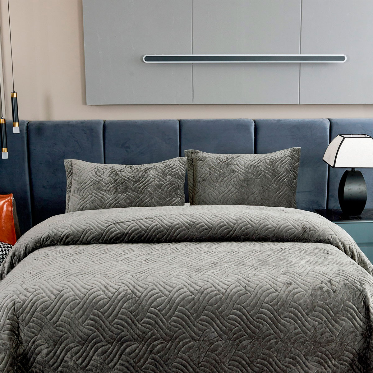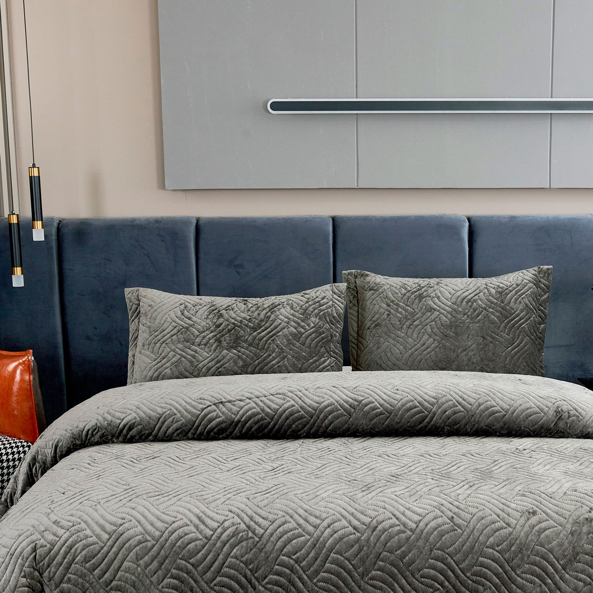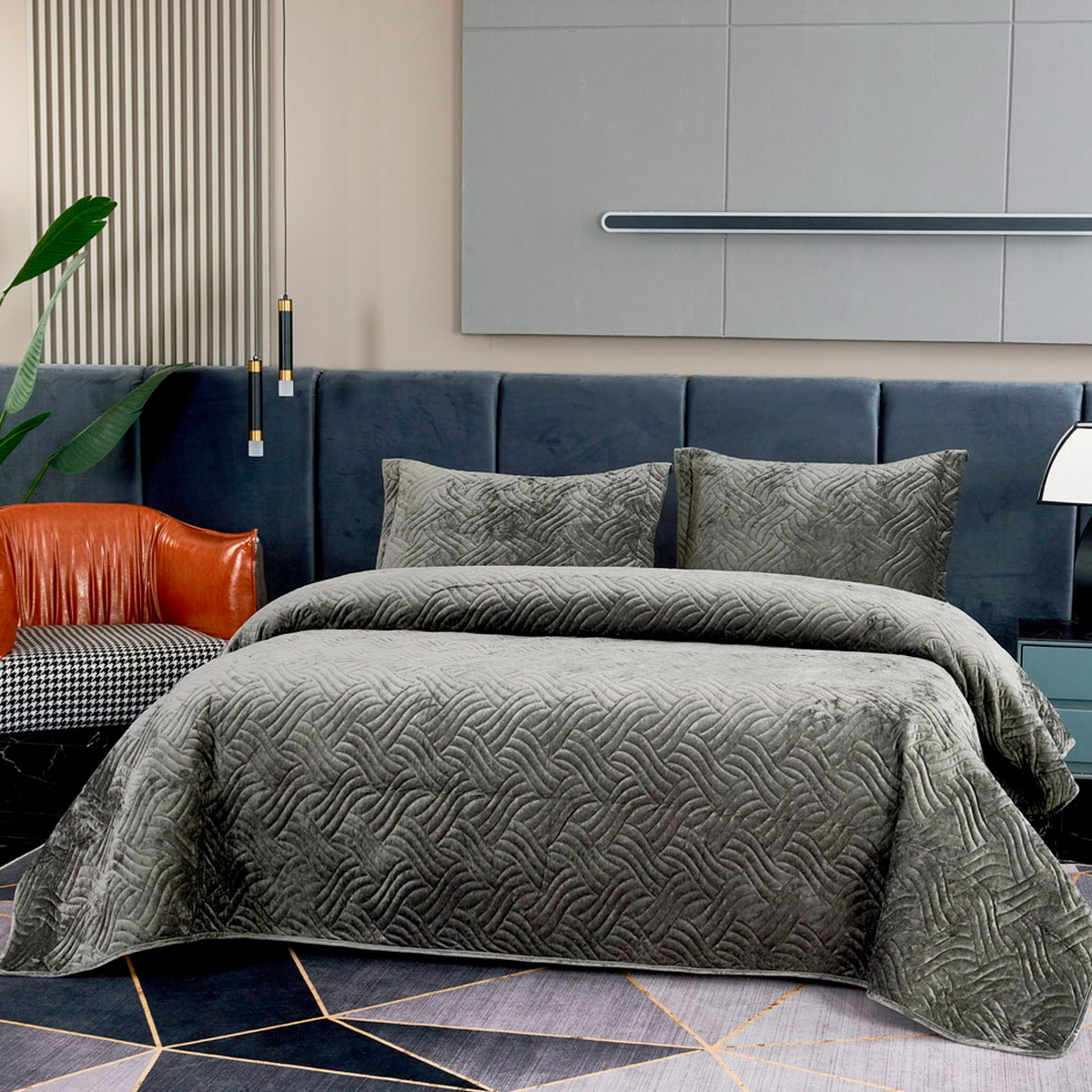 Покрывало бархатное Sofi de Marko Деварта с наволочками, стоун