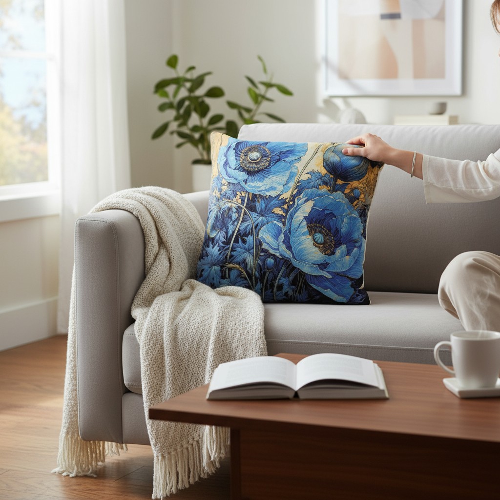 Подушка декоративная Фабрика Цветы Синие маки