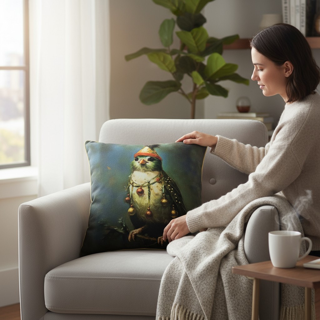 Подушка декоративная Фабрика Дивные птицы Птичка в бусах на ветке