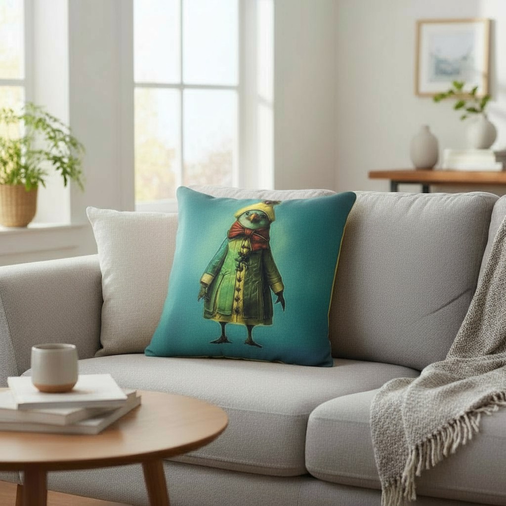 Подушка декоративная Фабрика Стильные птички Птичка в пальто с шарфом