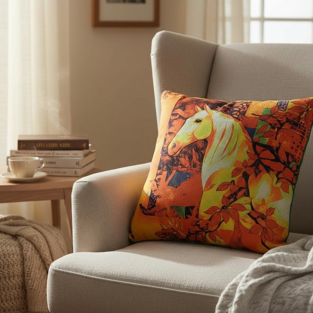 Подушка декоративная Фабрика Лошади Белый конь, золотая листва