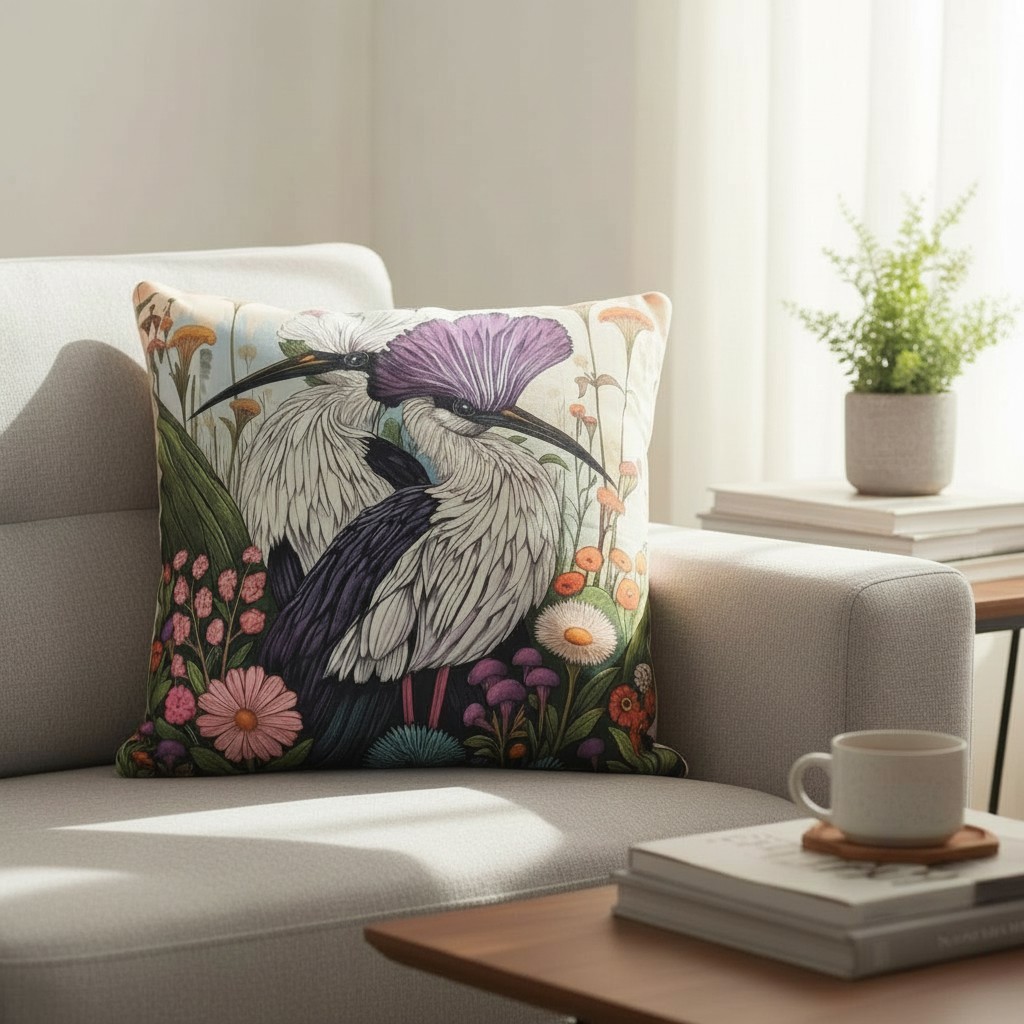 Подушка декоративная Фабрика Дивные птицы Две бело-фиолетовые птицы