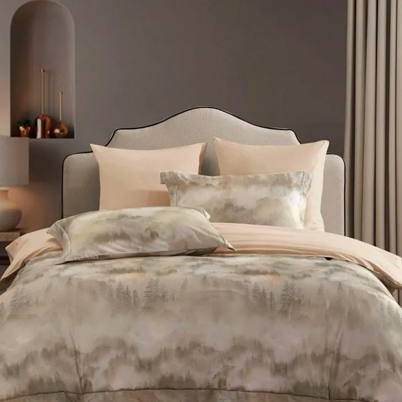 Комплект постельного белья евро Anabella Asabella туманный лес на бежевом
