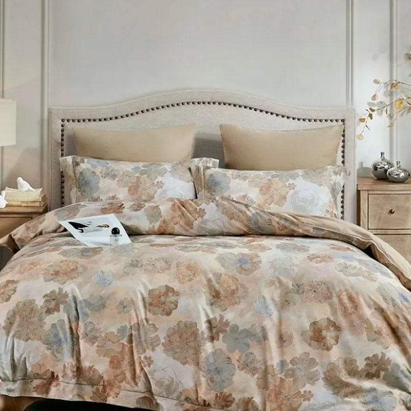 Комплект постельного белья евро Anabella Asabella цветы на бежевом