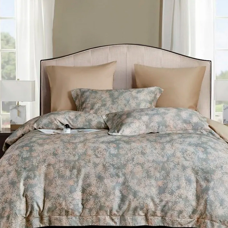 Комплект постельного белья евро Anabella Asabella цветы на светло-сером с бежевой простыней