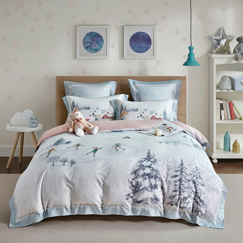 Комплект постельного белья евро Anabella Asabella зимний пейзаж на светло-сером