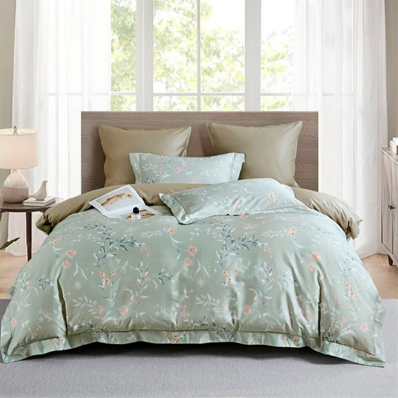 Комплект постельного белья евро Anabella Asabella цветы на оливковом