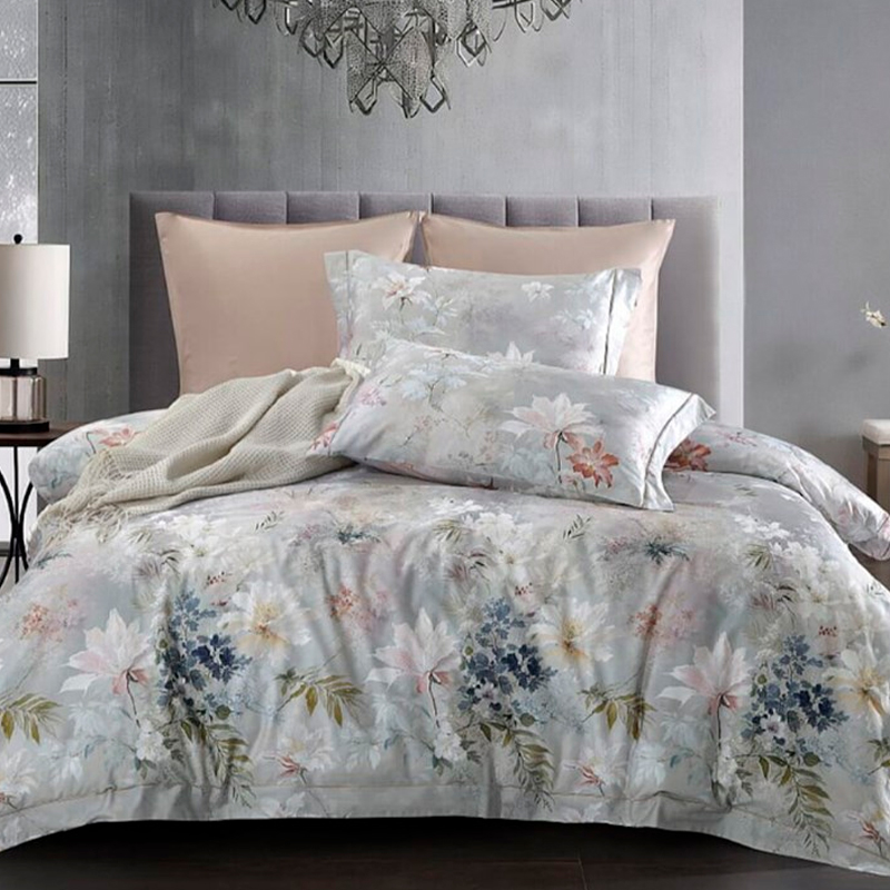 Комплект постельного белья евро Anabella Asabella цветы на светло-сером