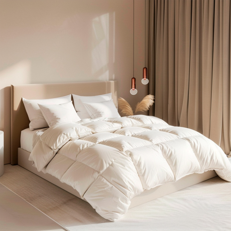 Пуховый наполнитель одеяла в сочетании с гладкой тканью чехла из египетского хлопка обеспечат комфортный и спокойный сон и гарантируют приятные ощущения во время сна.