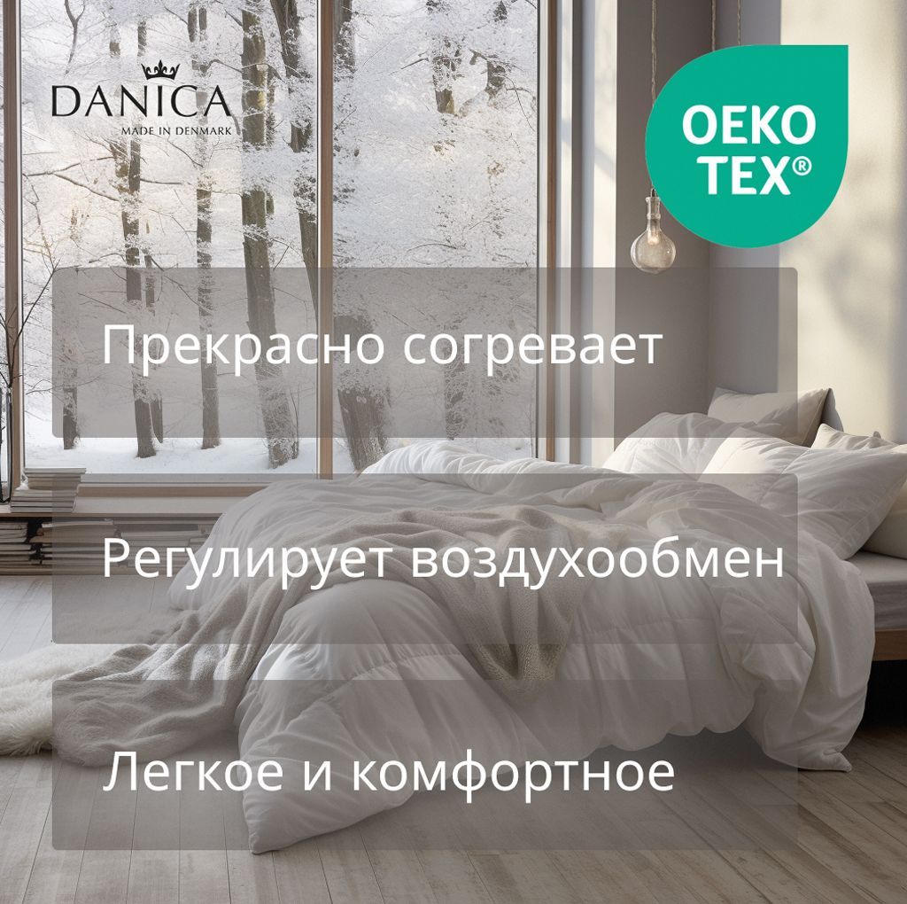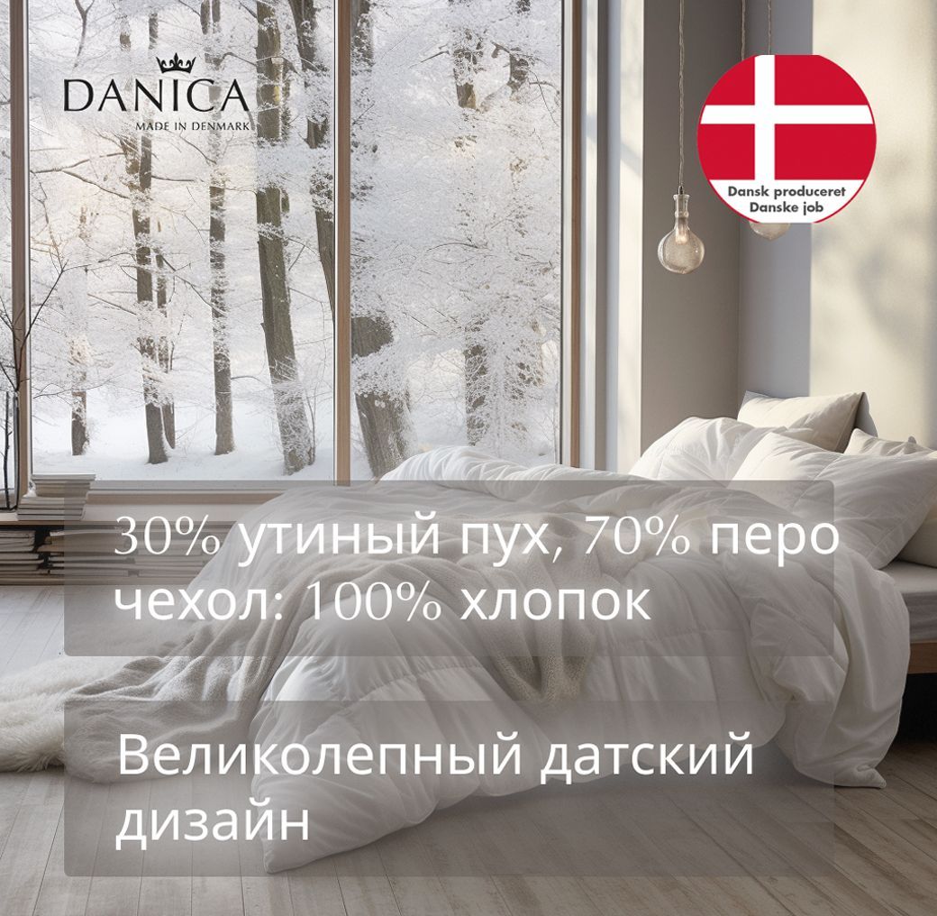 Danica не только придерживается высоких норм и стандартов качества, но и строго соблюдает экологический кодекс. Использование натурального гипоаллергенного датского сырья дает гарантию высокого качества и делает процесс производства экологически чистым. Также компания предъявляет высокие требования к поставщикам наполнителей, требуя от них письменную гарантию того, что поставляемые пух и перья не получены путем общипывания живых птиц. Высочайшее качество – это то, что отличает продукцию Danica, и это подтверждают соответствующие сертификаты.