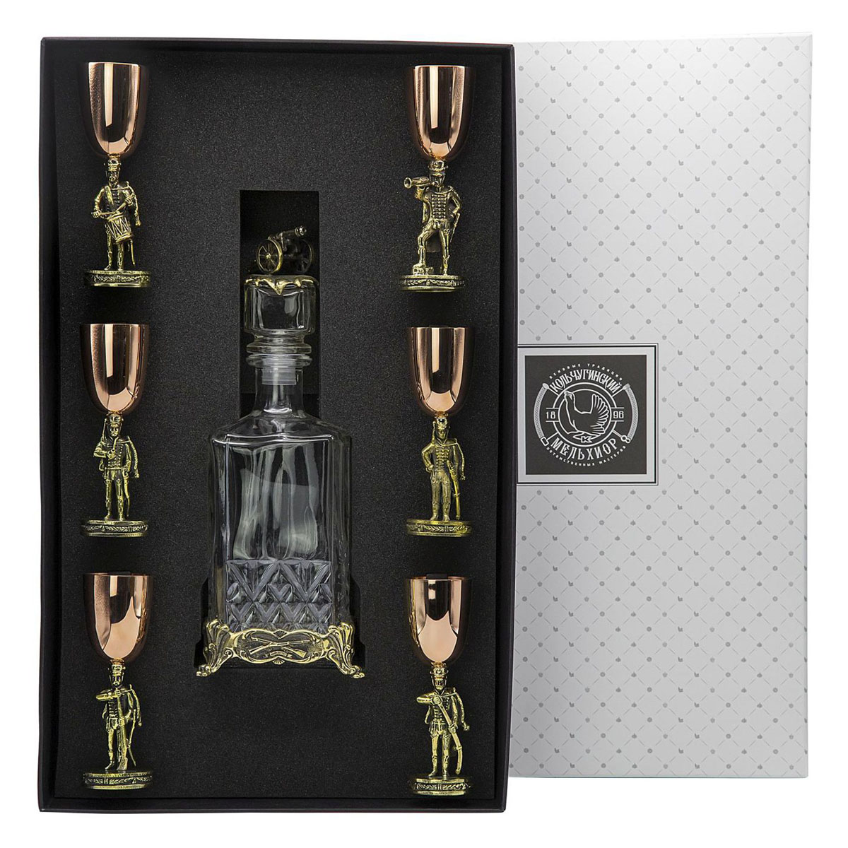 Набор Кольчугинский Мельхиор Охотничий домик штоф и 6 рюмок