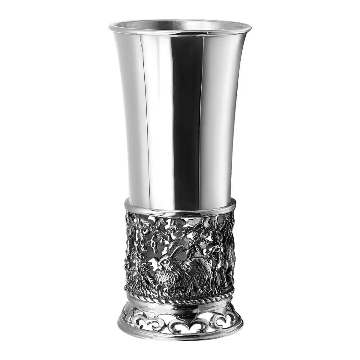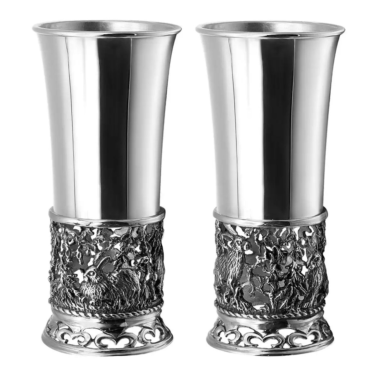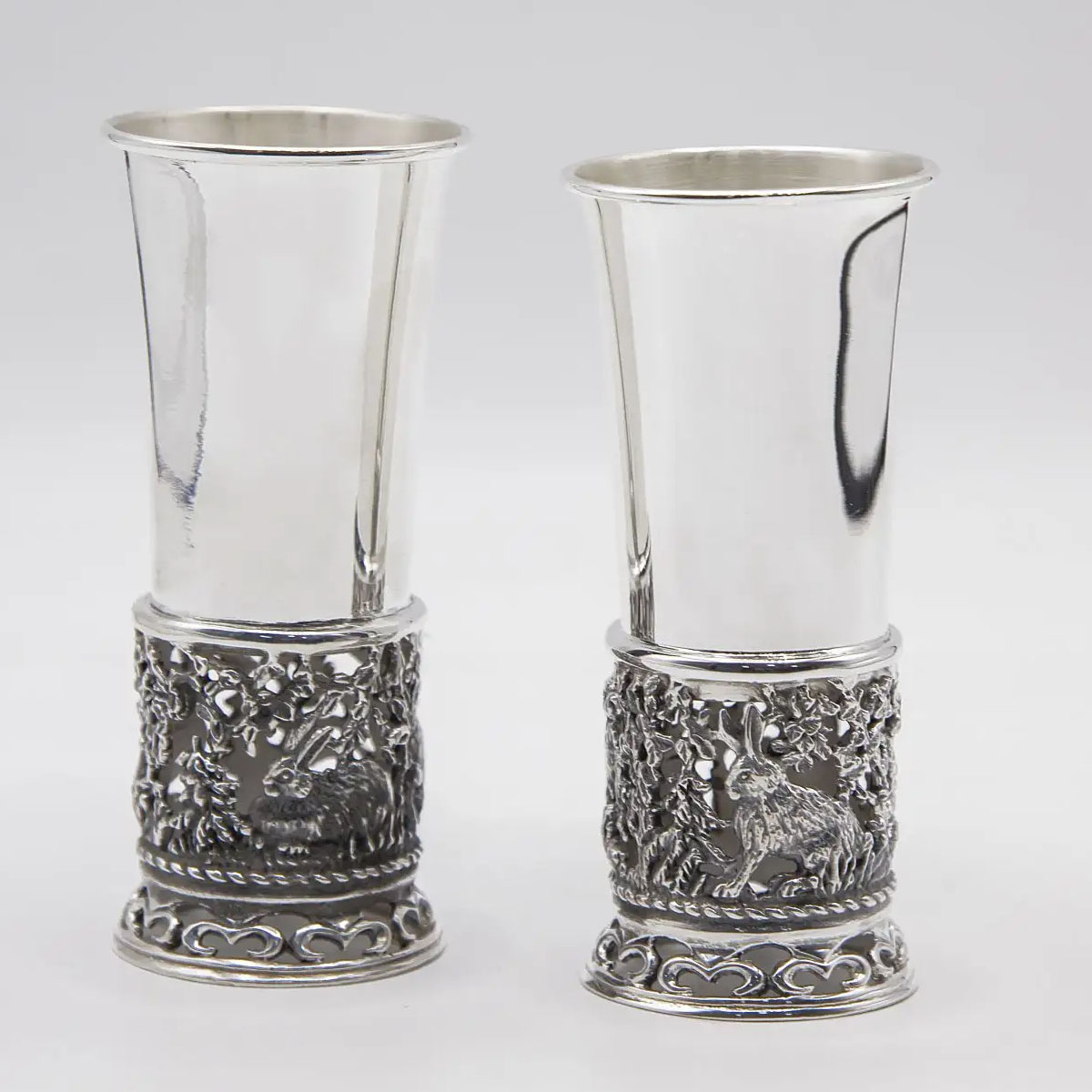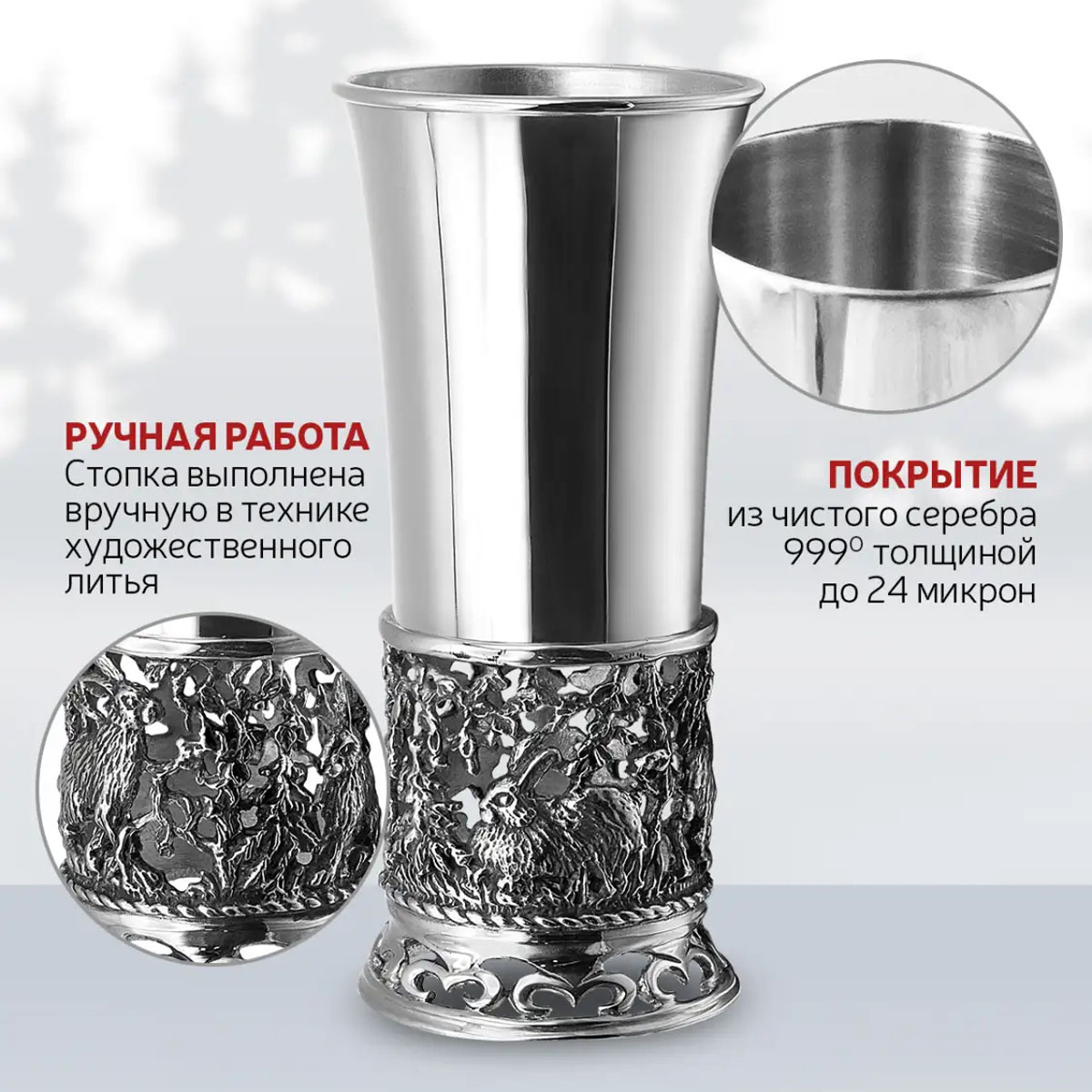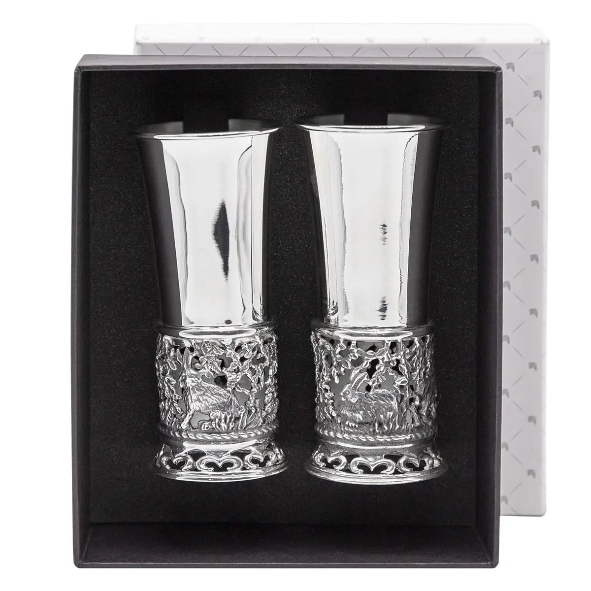 Набор рюмок Кольчугинский Мельхиор Охотничий домик Зайцы посеребрение с чернением 2шт в футляре