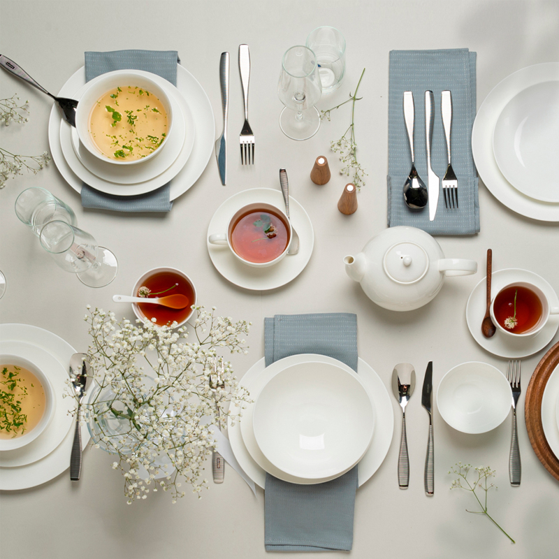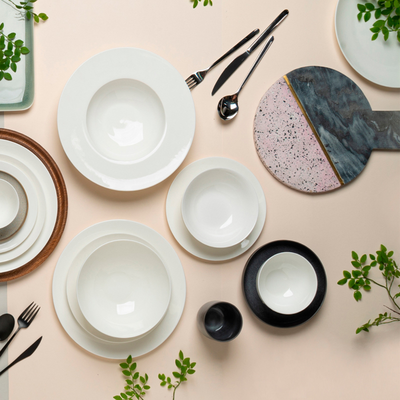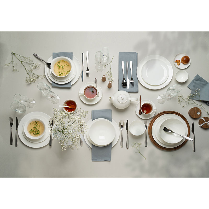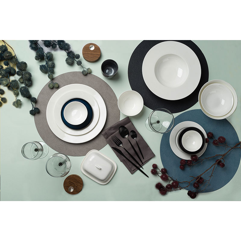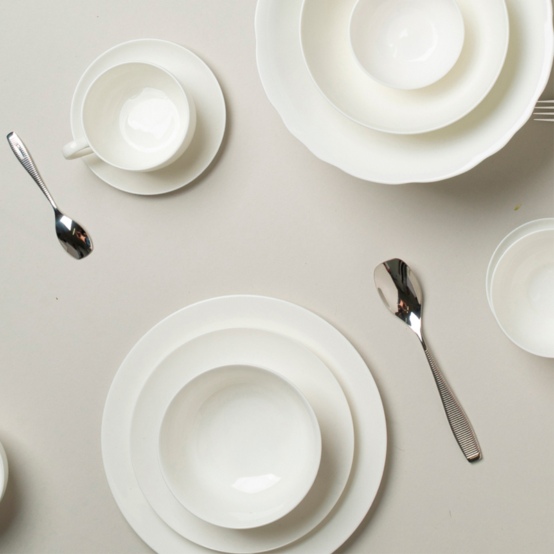 Посуда Акку изготовлена из костяного фарфора - самого прочного вида твердого фарфора. Это хрупкий на первый взгляд, но невероятно прочный и плотный материал, изготовленный по древнейшей китайской технологии. В составе костяного фарфора отсутствуют примеси и загустители, поэтому стенки посуды тонкие и просвечивающиеся. Посуду из костяного фарфора, не имеющую золотого рисунка, с легкостью можно мыть в посудомоечной машине, она не впитывает запахи и не искажает вкус.