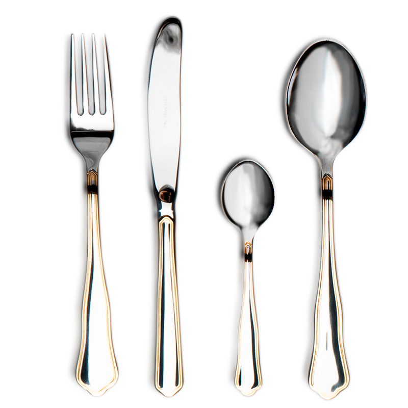 Основными характеристиками столовых приборов является их стильный дизайн, толщина изделия, качество полировки и прочность материала, из которого они изготовлены. Общепринятым эталоном сплава стали, который используется для изготовления столовых приборов является сплав с добавлением 18% хрома и 10% никеля.