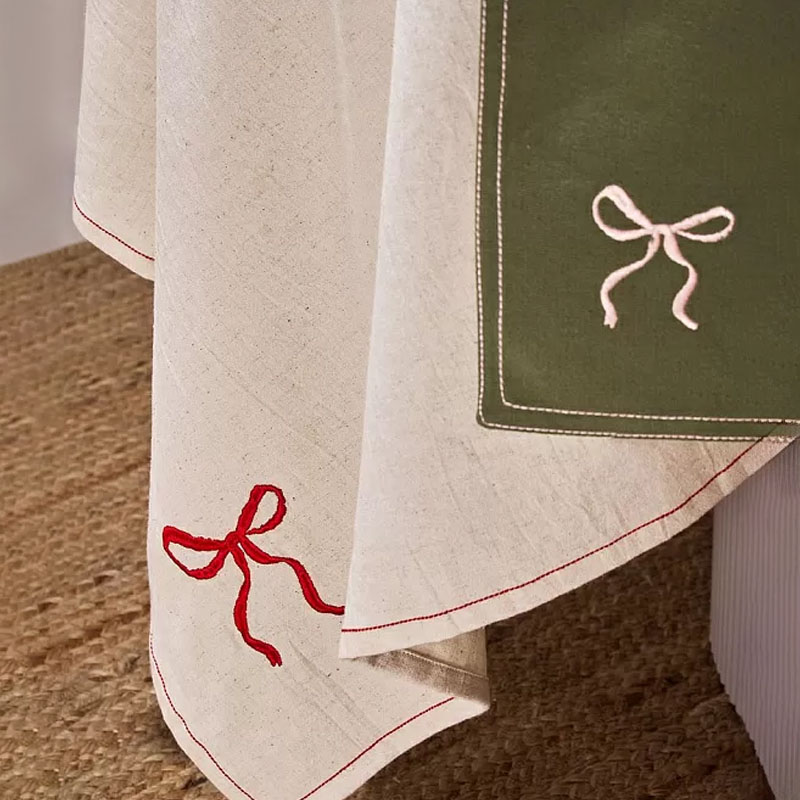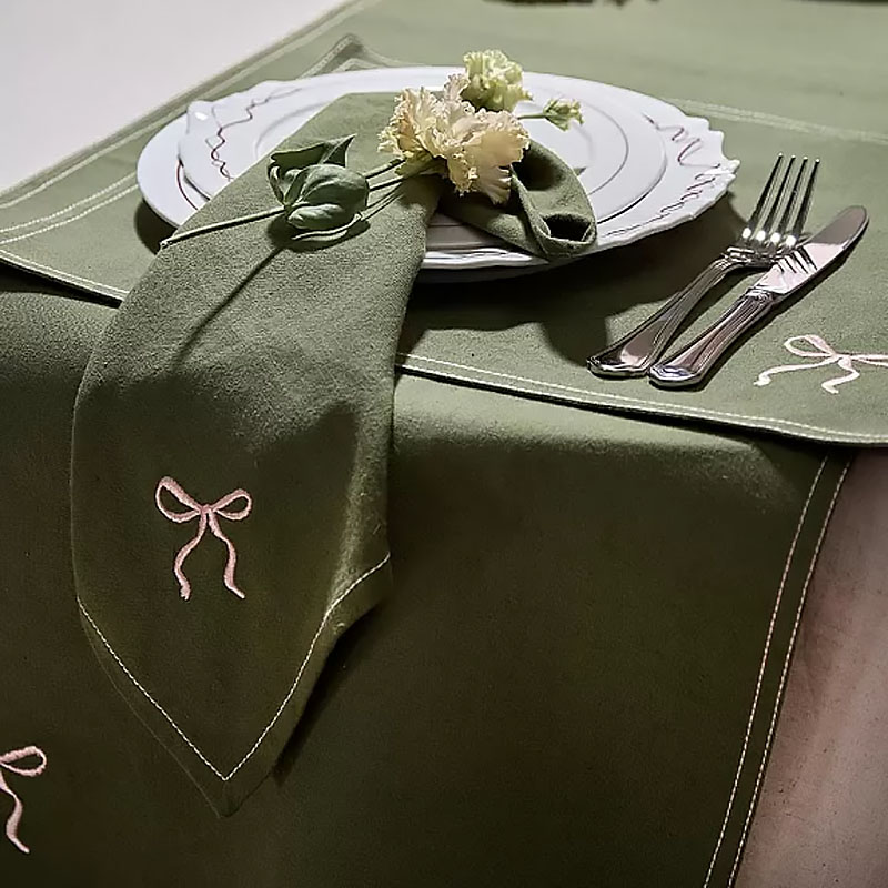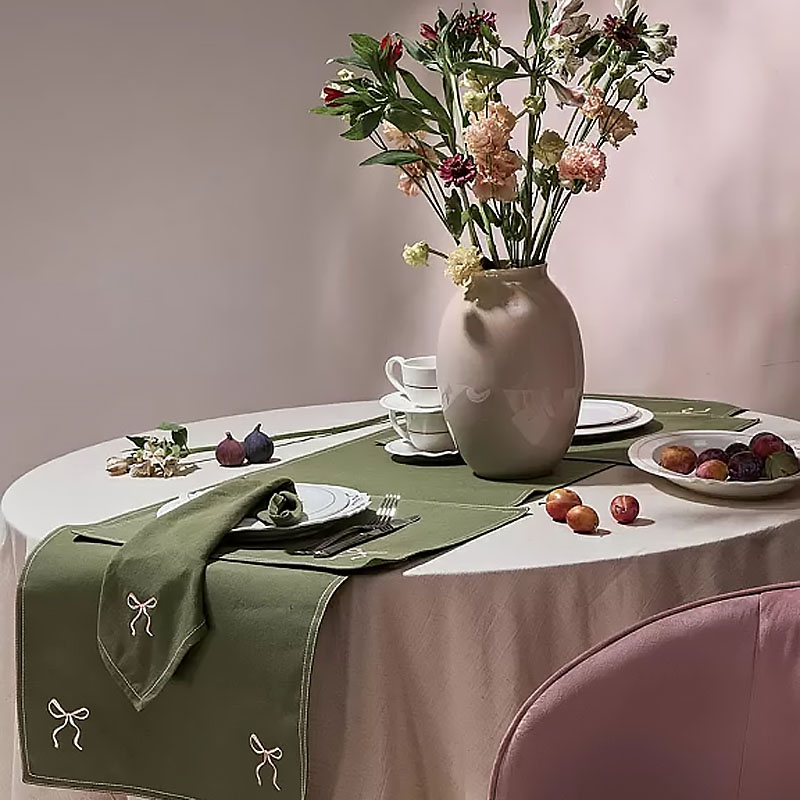 Дорожка на стол Tkano Essential Fancy Bows, олива