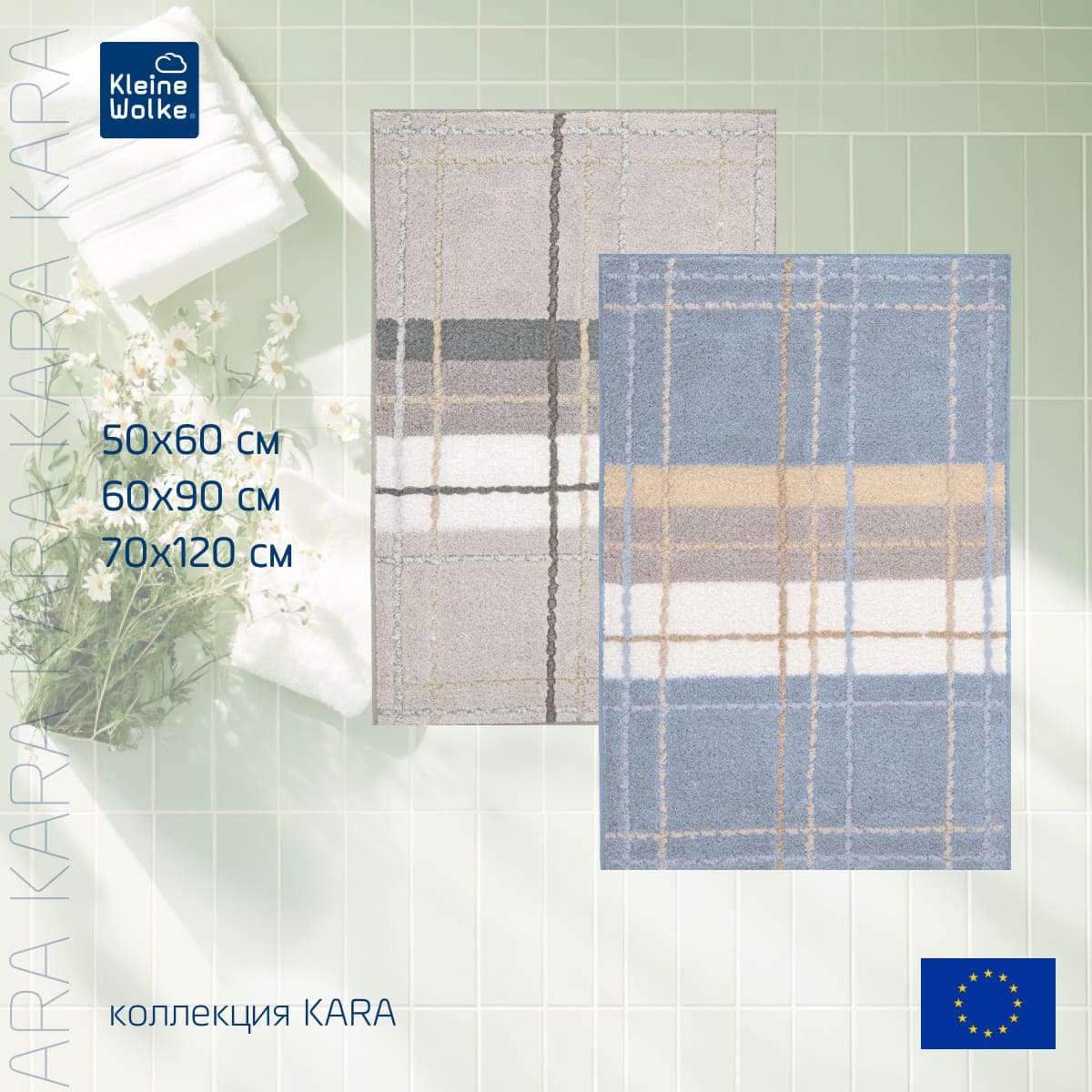 Коврик для ванной комнаты Kleine Wolke Kara 60x90см, светло-серый